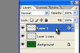 ![]() Sedaj Layer 1 copy premaknite nad layerjem Background in pod Layer 1. |