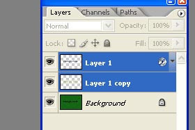 ![]() Držite tipko CTRL in označite skupaj layerja Layer 1 in Layer 1 copy. |