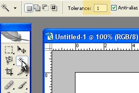 ![]() Izberite Magic Wand Tool (bližnjica je tipka W) in Tolerance nastavite 1. |