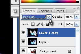 Layerju nastavite senčenje na Hard Light (glej sliko).
