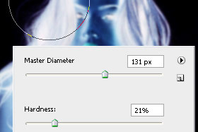 Kliknite z desnim miškinim gumbom na dokument in nastavite poljubno velik Master Dimater (velikost radirke) in Hardness na okoli 21% (glej sliko).