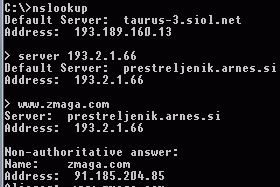 Nato se pošlje zahteva na strežnik DNS, kateri pretvori ime www.zmaga.com v IP naslov 91.185.204.85.
