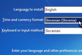 ![]() Ko se pojavi okno z jezikovnimi nastavitvami, pod Time and currency format izberite Slovenian in kliknite na gumb Next. |