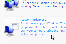 ![]() Sedaj vas namestitev vpraša za tip namestitve. |