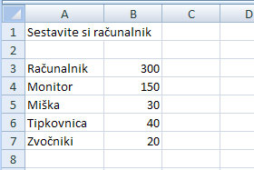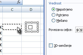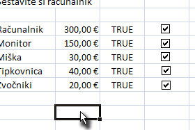 Nato pa z miško kliknite na polje med ceno in potrditvenim poljem (v tem primeru je to polje C3). Kliknite na gumb V redu. |