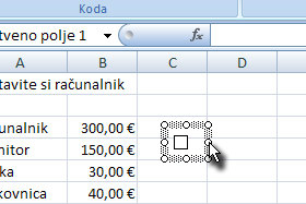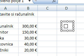 Polje naj bo označeno in ga premaknite na sredino celice D3 (glej sliko).