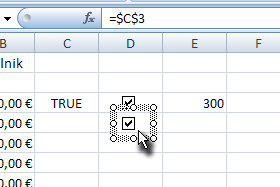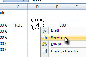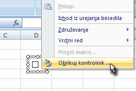 Kliknite na potrditveno polje z desnim miškinim gumbom in izberite Oblikuj kontrolnik ... Nato pa v novem oknu ponovite korak 12, le da bo celica eno nižje. |