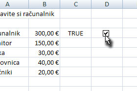 Če boste potrditveno polje označili, se vam bo prikazal napis TRUE ali pa FALSE.