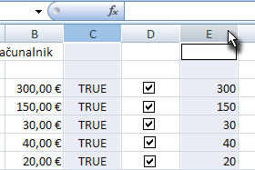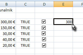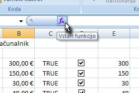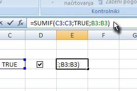 Potem pa v okno za formulo vpišite vrednost =SUMIF(C3:C3;TRUE;B3:B3).