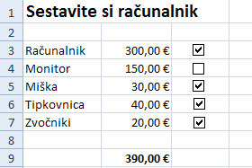 Potem pa lahko z označevanjem vrednostnih polj seštevate skupni znesek. |