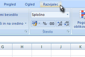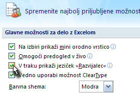 V novem oknu označite V traku prikaži jeziček "Razvijalec" in kliknite na gumb V redu.