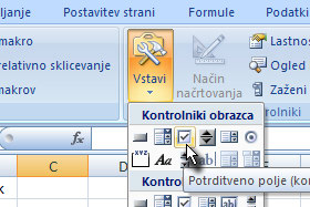 Potem kliknite na gumb Vstavi in izberite Potrditveno polje (glej sliko).