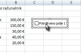 Kliknite z miško nekje blizu prve valute (glej sliko), da boste vstavili prvo potrditveno polje.