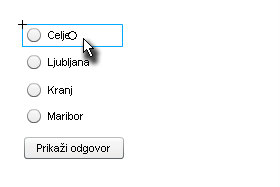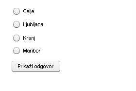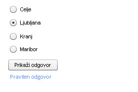 Za Button pa določite label Prikaži odgovor (glej sliko). Pravilni odgovor na vprašanje glavnega mesta Slovenije je Ljubljana :) |