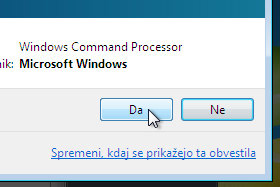 Odpre se opozorilno okno, kjer potrdite na gumb Da.