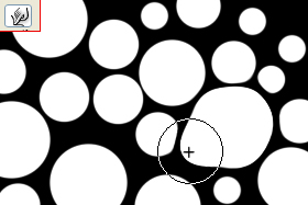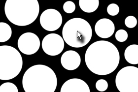 Izberite Brush Tool(B) z belo barvo, Hardness pa nastavite na 100%. Klikajte po dokumentu z poljubnimi velikostmi čopiča, podobno kot je na sliki levo.
