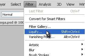 Ko končate , pojdite zgoraj v meniju Filter, Liquify.