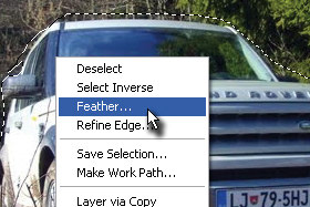 Kliknite na označeni del z desnim miškinim klikom in izebrite Feather... |