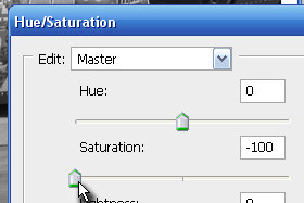 V novem oknu premaknite drsnik Saturation na -100 (glej sliko) in kliknite na gumb OK.