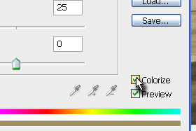 Ponovno se odpre okno Hue/Saturation, kjer označite Colorize in kliknite na gumb OK.