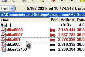 Jaz sem izbral kar vse (za onačitev vseh datotek v mapi, je bližnjica tipka *). |