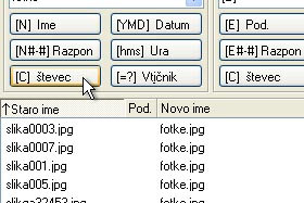Ker pa bi radi oštevilčili vse datoteke, kliknite na gumb števec.