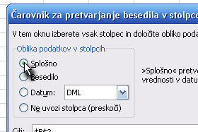 Ker ločujemo besedilo, označite pod obliko kar Splošno in kliknite na gumb Naprej.