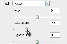 ![]() Pritisnite tipki CTRL + U in v novem oknu Saturation nastavite -45 ter potrdite s klikom na gumb OK. |
