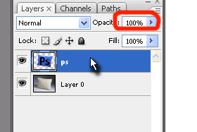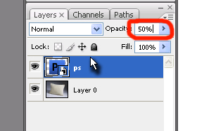 ...Layerju s Photoshopivm logotipom znižajte Opacity na 50% (za lažje delo)...
