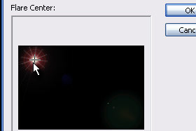 Potem pa v okno Flare Center določite prvi odsev (glej sliko)