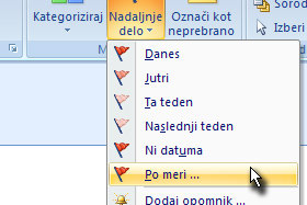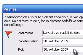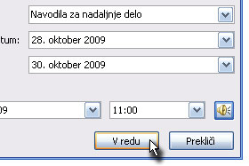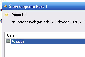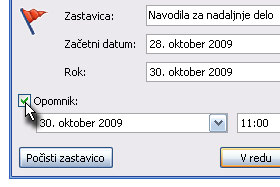 ![]() Potem označite Opomnik in spodaj datum ter uro, za katero želite, da vas Outlook tudi grafično in zvočno opomni. |