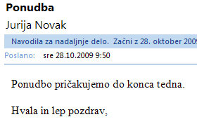 ![]() Odprite neko pomembno sporočilo, za katerega želite, da vas Outlook čez nekaj časa ponovno opomni.