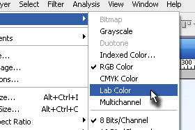 Kliknite zgoraj na Image, Mode in izberite Lab Color.