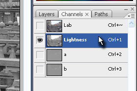 Kliknite na zavihek Channels in nato označite Lightness (glej sliko).