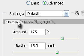 V novem oknu označite zavihek Sharpen in nastavite iste vrednosti kot jaz. Ne zaprite še okna ... |