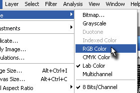 Kliknite zgoraj na Image, Mode in izberite RGB Color.