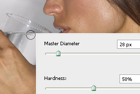 Kliknite z desnim miškinim gumbom na dokument in izberite poljubno velik Master Dimater (čopič) in Hardness na okoli 50% (glej sliko).