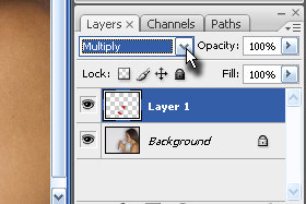 Sedaj layerju nastavite senčenje na Multiply (glej sliko).