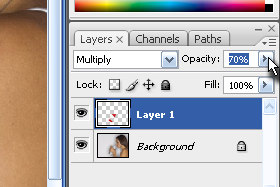 Določite layerju še Opacity na okoli 70% (glej sliko).