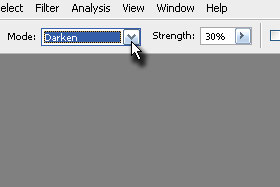 ![]() Zgoraj določite Mode na Darken in Strenght 30% (glej sliko). |