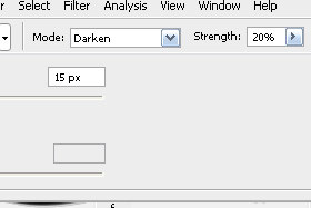 ![]() Zgoraj določite Mode na Darken in Strenght 20% (glej sliko). |