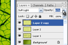 ![]() Določite layerju senčenje na Soft Light in Opacity na 60% (glej sliko). |