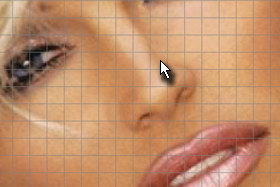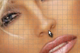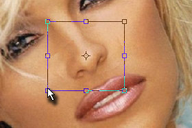 Pritisnite tipki CTRL + T in potem transformirajte selekcijo tako, da boste nos iz leve in desne zoožali.