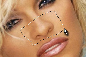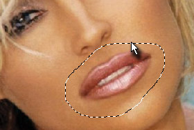 Ustvarite selekcijo okoli ustnic (glej sliko).