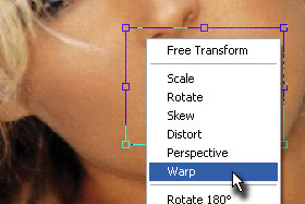 Potem pa kliknite nanj z desnim miškinim gumbom in izebrite Warp. |