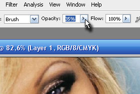 Določite zgoraj v orodni vrstici Opacity na 35% (glej sliko).