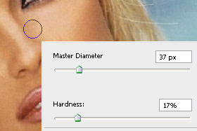 Kliknite z desnim miškinim gumbom na dokument in določite poljubno velik Master Diamater (velikost radirke) in Hardness na okoli 17% (glej sliko).