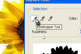 Kliknite sedaj na barvo, ki jo boste zamenjali. Jaz sem klinil na rumeni cvet od sončnice, ker bom cvetove spremenil v rdeče.