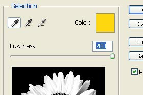 Nastavite Fuzzniess na tako vrednost, da bo vaš objekt v oknu spodaj postal edini bele barve na celotni fotografiji, kajti le-ta se bo spreminjala.