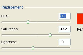 V polju Replacement pa nastavite Hue, Saturation in Lightness v poljubne vrednosti, dokler ne bo slika dobila prave zamenjave barve.